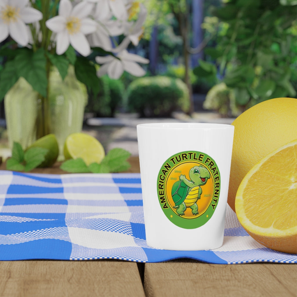 This custom American Turtle Fraternity shot glass adds a green touch to any pond gathering. Made with ceramic material, this custom shot glass is great for pond hatching gifts or for personal use. .: Size: 1.9oz (0.056l) .: Material: white ceramic .: Available in white or black interior Bloop, Bloop!