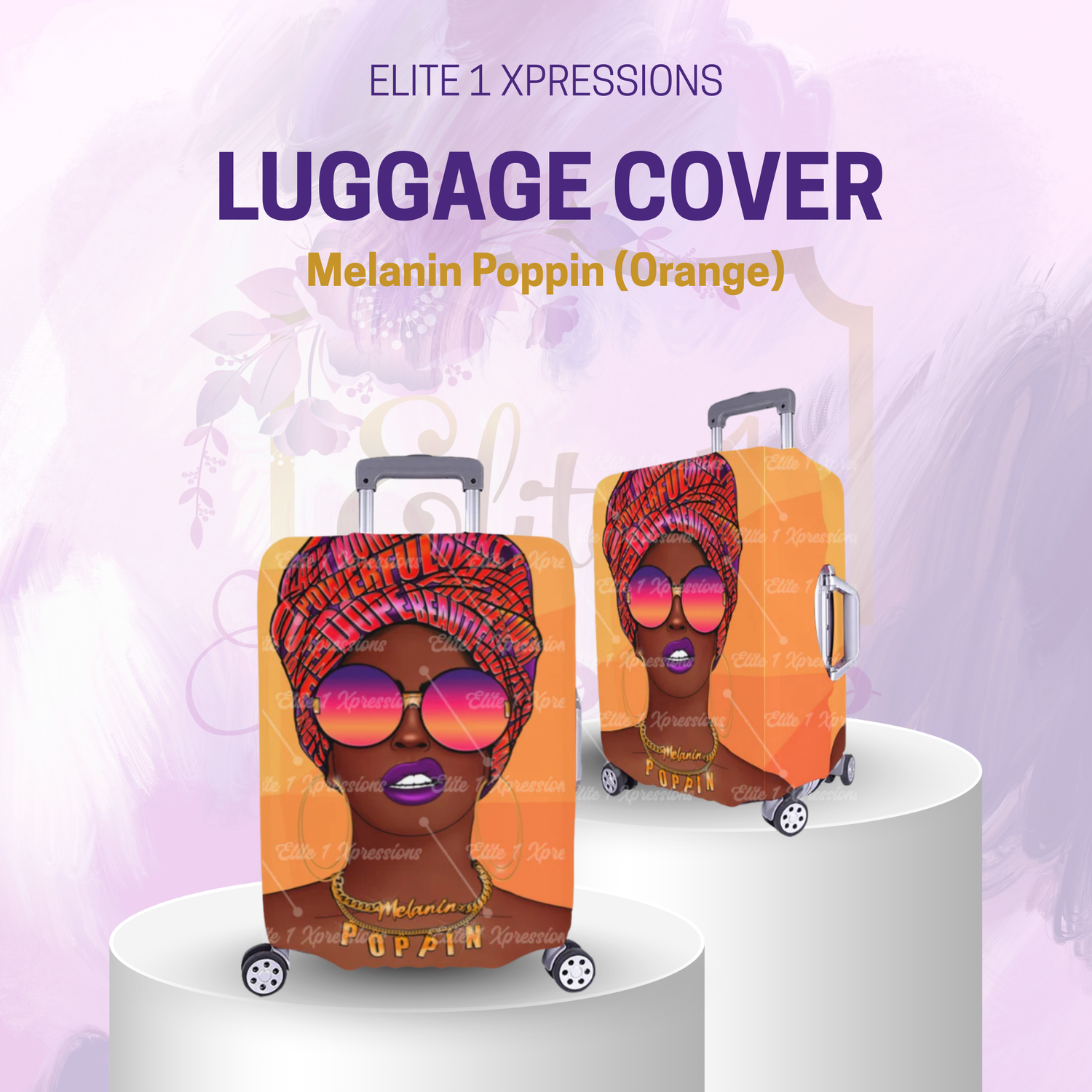Travel in style with a statement piece! Turn heads on your next getaway trip and make luggage pick up easy to spot with this custom protective cover. Made of elastic polyester-spandex fabric, it ensures a snug and durable fit for your suitcase.