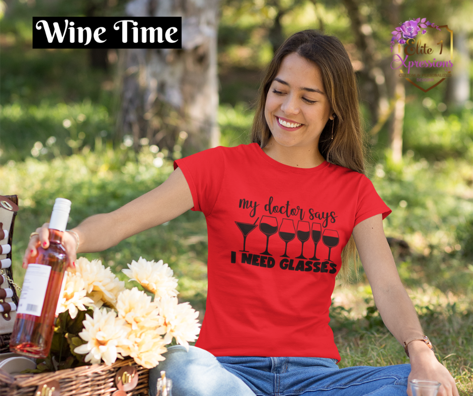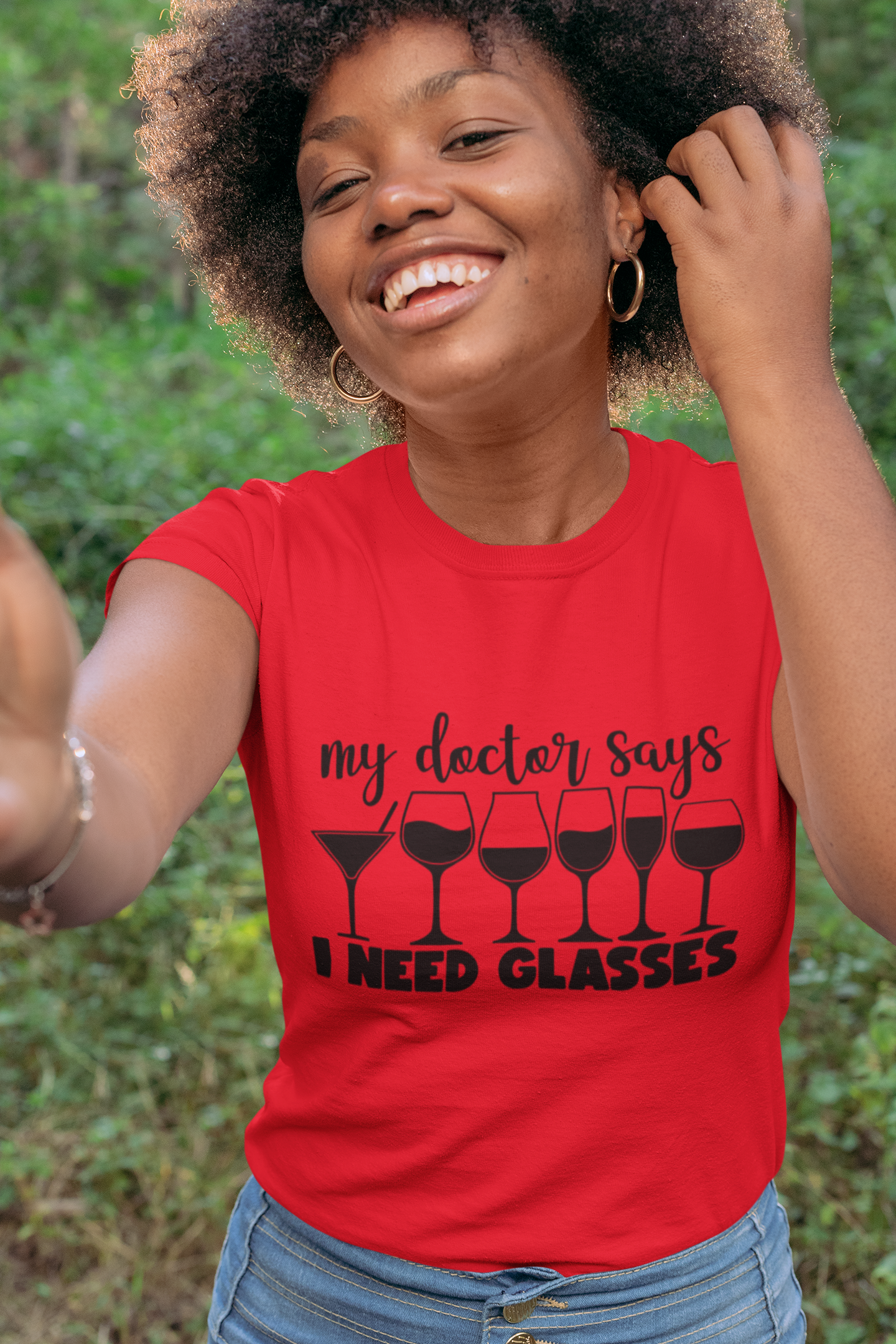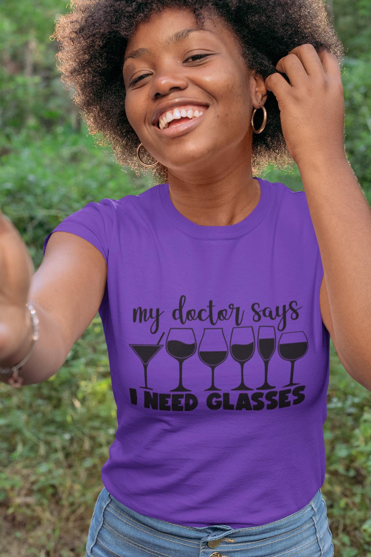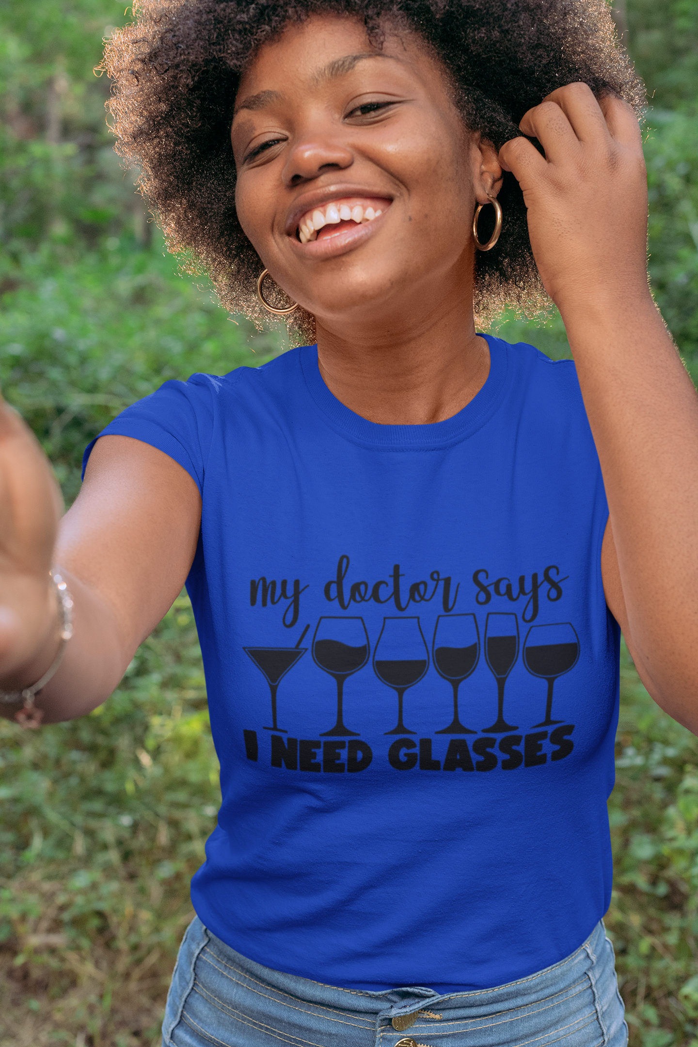 T-shirt created for the fierce women around the world, to remember everyday that she is worthy. The Dr. Says "I Need Glasses" shirt is a perfect conversation starter and a great shirt to wear on Wine Down Wednesday or any day!