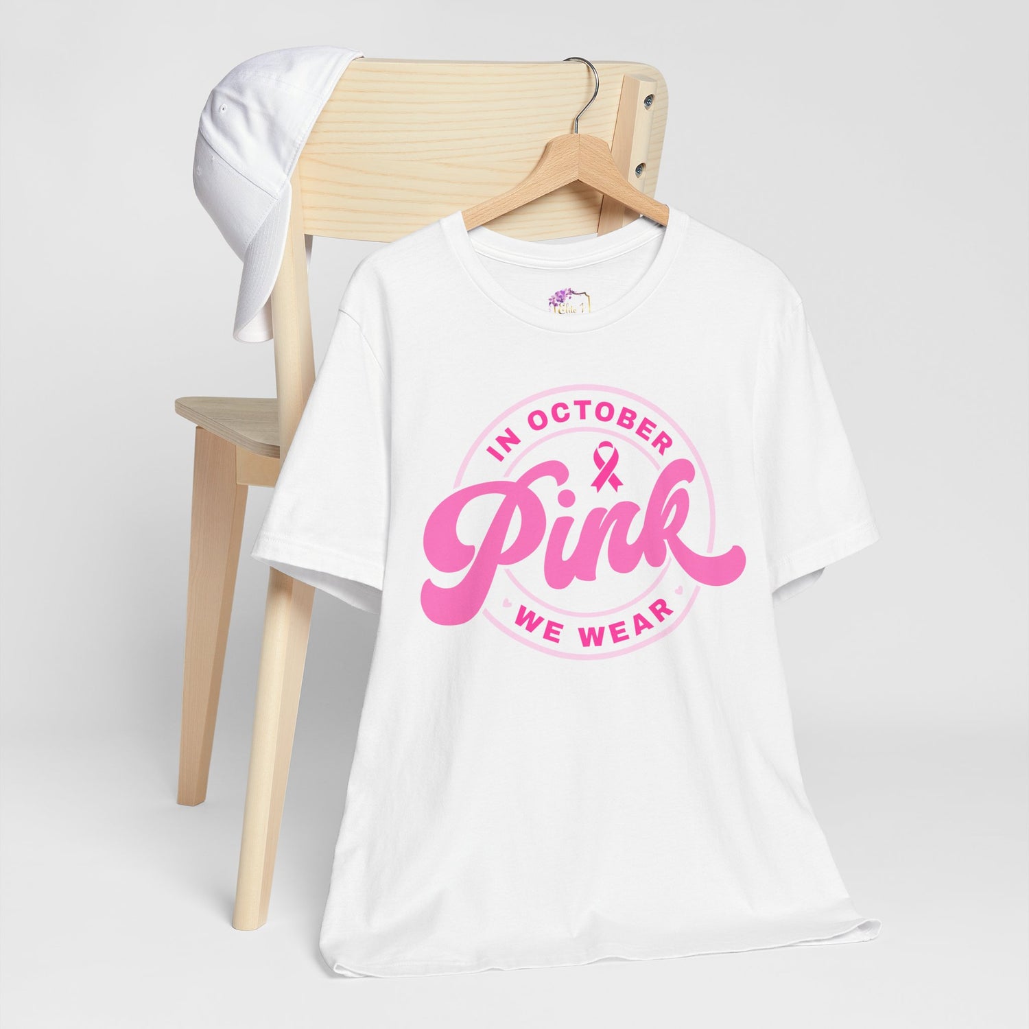 Show your love and support this October with our “In October We Wear Pink” Unisex T-Shirt — a meaningful way to raise awareness for breast cancer while staying effortlessly stylish. Featuring a bold pink awareness ribbon design, this tee is available in black or white to match your personal style.