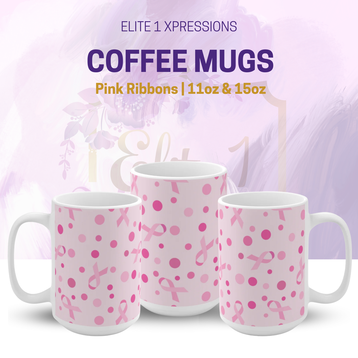 ✨ Pink Ribbons Ceramic Mug (11oz or 15oz)