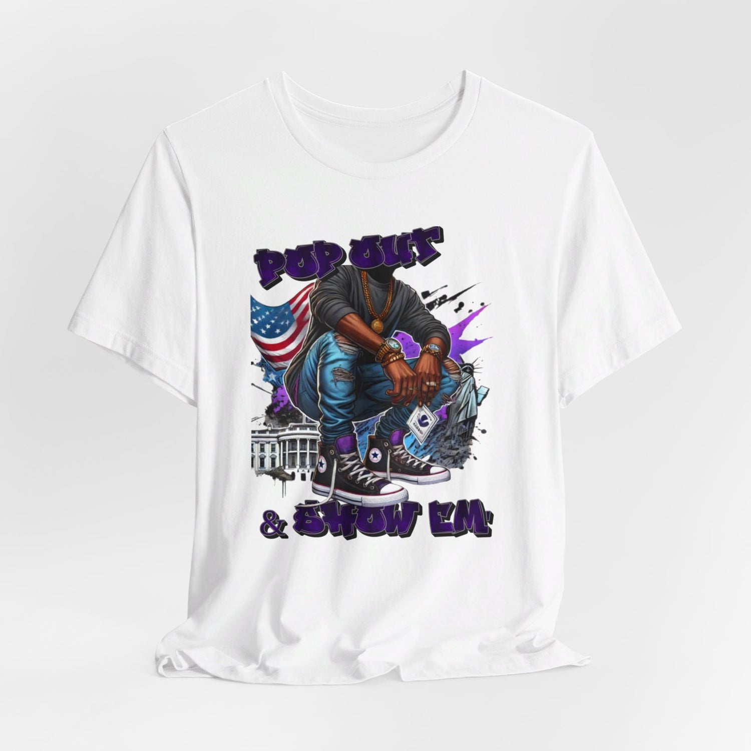 👕 POP Out (Purple, Black & Grey) Unisex Jersey Short Sleeve Tee