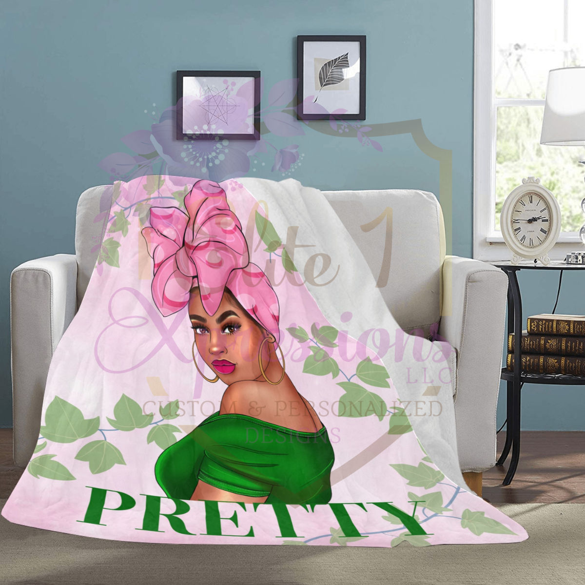 Created for the "Pretty" woman to enhance her moments of relaxation.  Featuring an ultra-soft flannel with a premium print, this blanket is a perfect match for sofa and couch. Use it for snuggling while relaxing or watching TV.