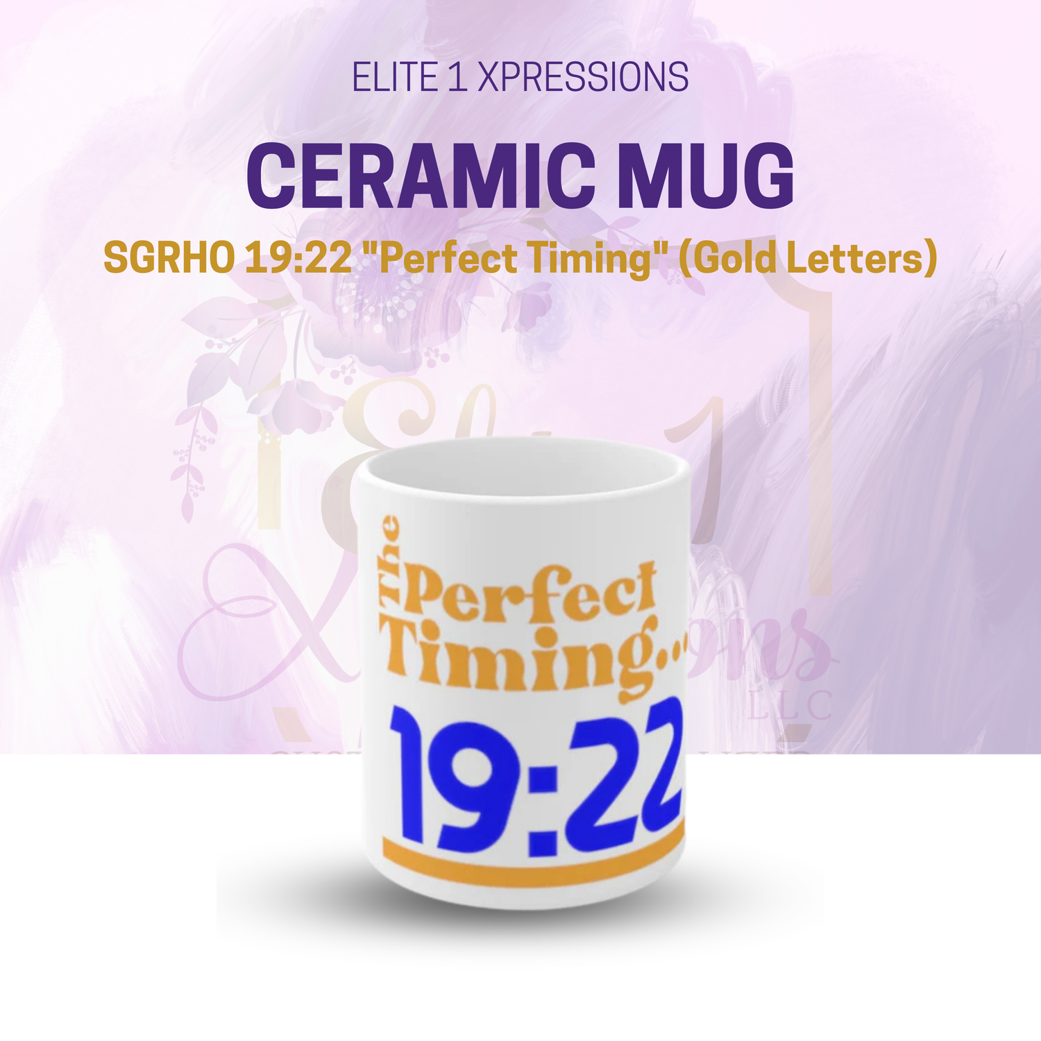 SGRHO 19:22 "Perfect Timing" Ceramic Mug (Gold Letters)