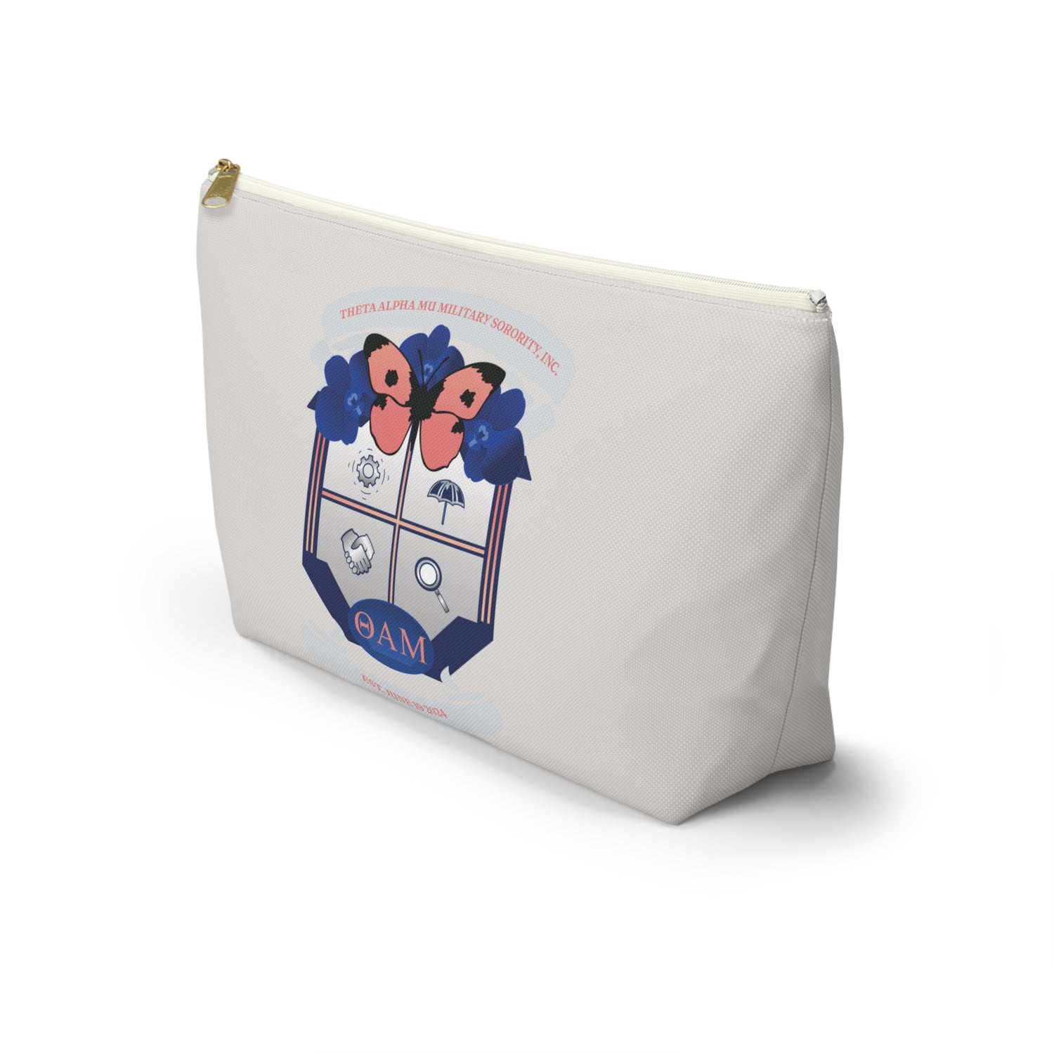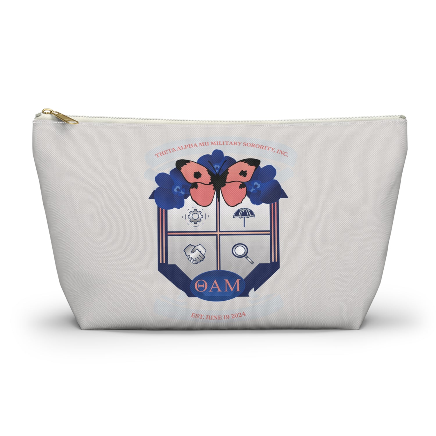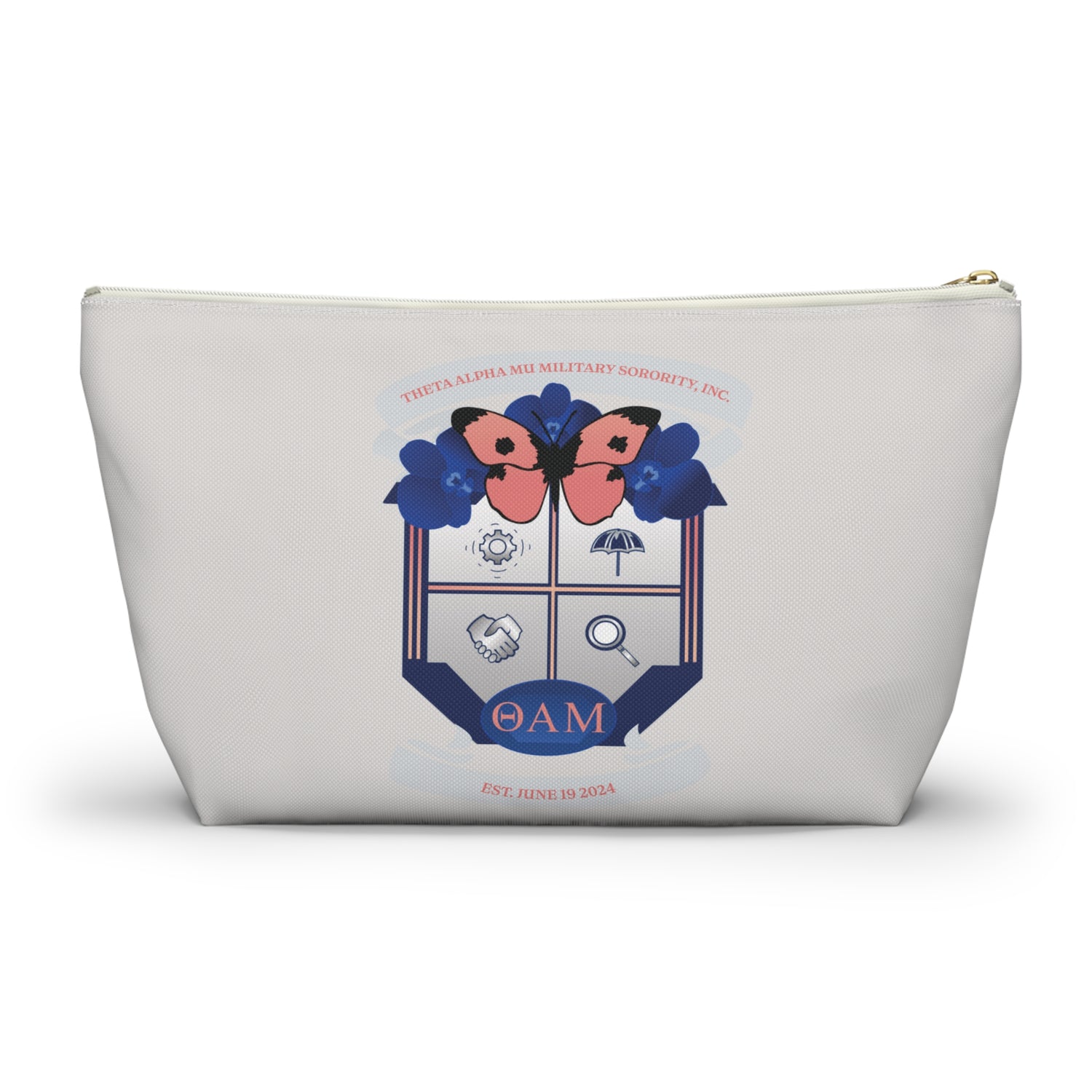 Stay organized in style with the Theta Alpha Mu T-Bottom Pouch. Versatile and durable, this pouch is perfect for carrying everything from cosmetics to stationery and travel essentials. Designed with practicality and sorority pride in mind, it’s an everyday accessory that keeps your items secure and easily accessible wherever you go.