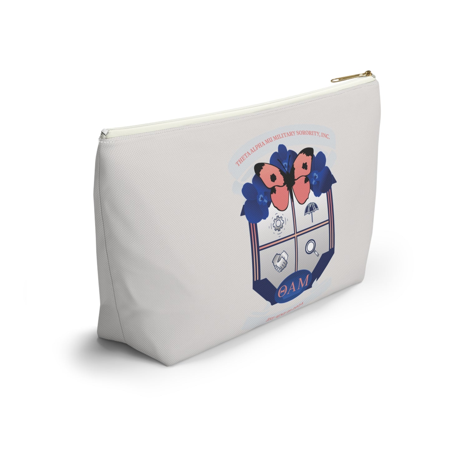 Design Details: Stylish Theta Alpha Mu design with a sturdy zipper closure and a spacious T-bottom structure for extra room.