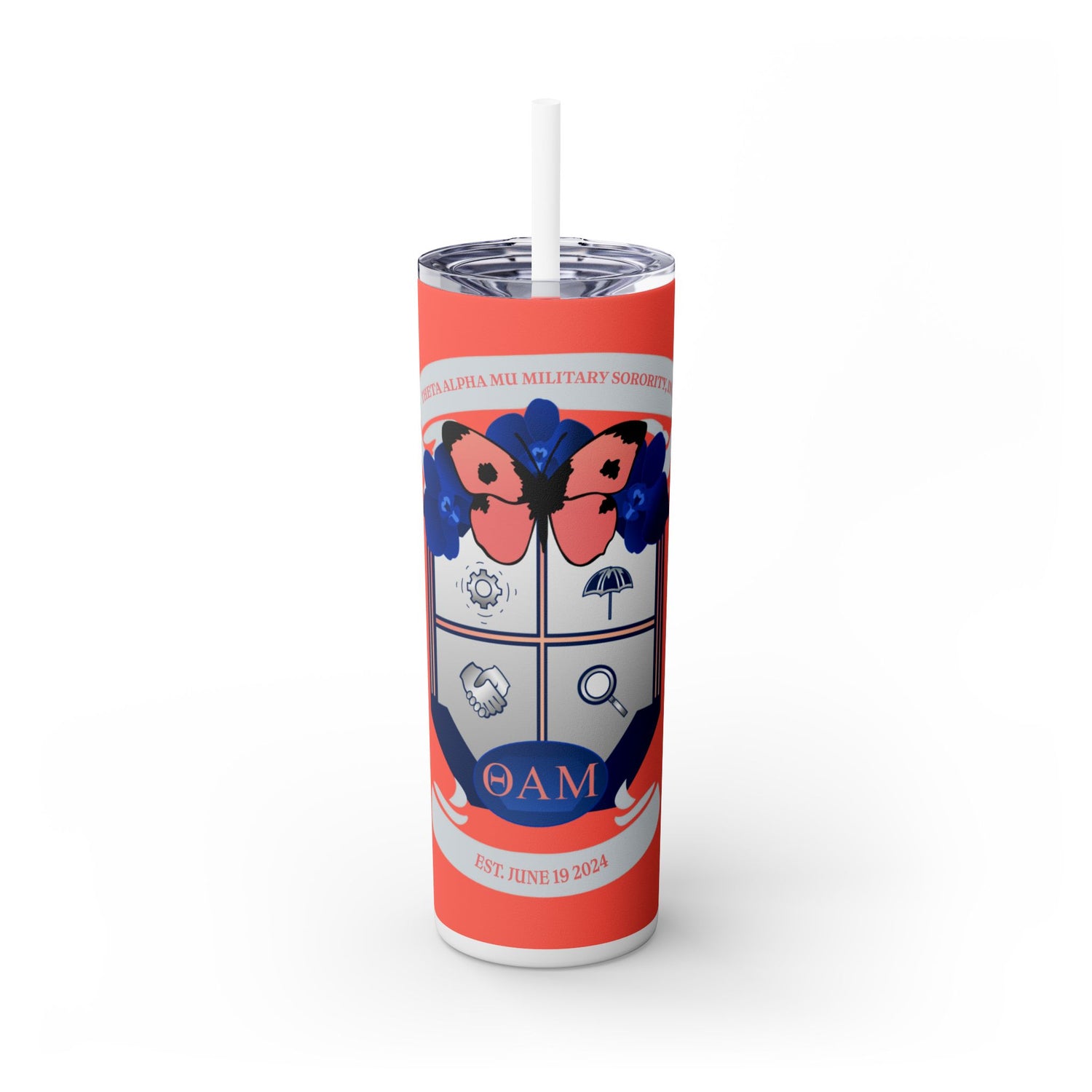 Theta Alpha Mu Skinny Tumbler with Straw, 20oz