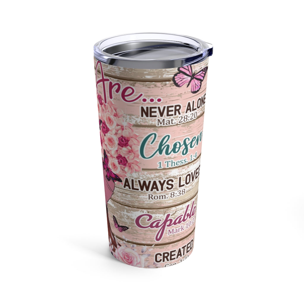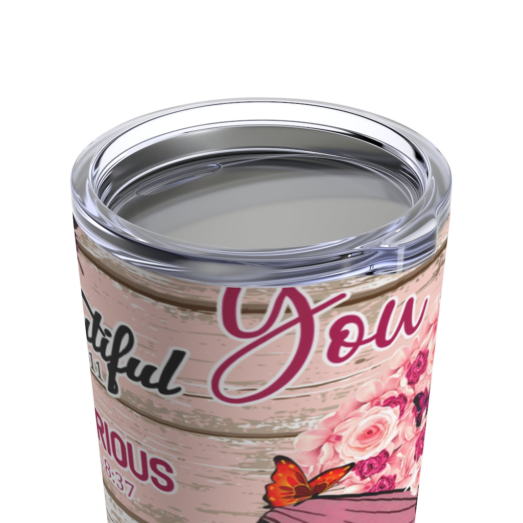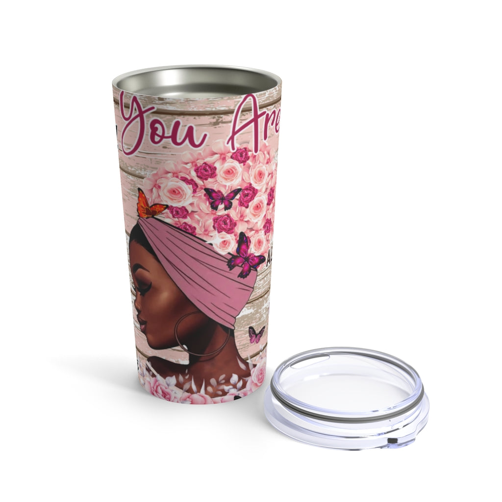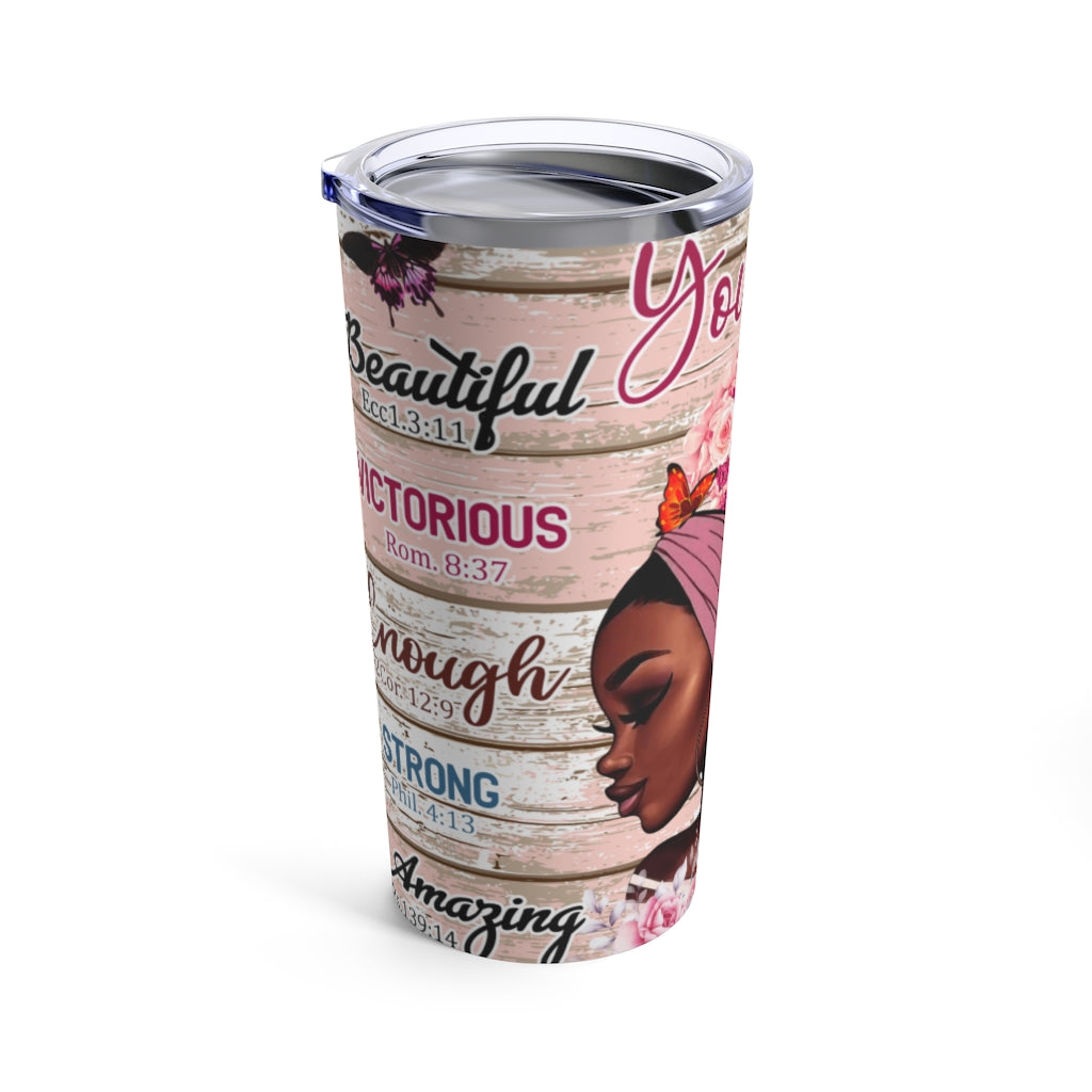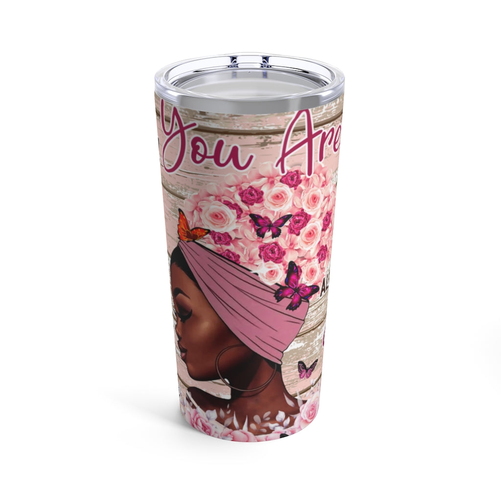 This 20oz stainless steel tumbler is a vacuum-insulated travel mug designed to keep you hydrated all while keeping cold drinks cold and hot drinks hot for hours.
